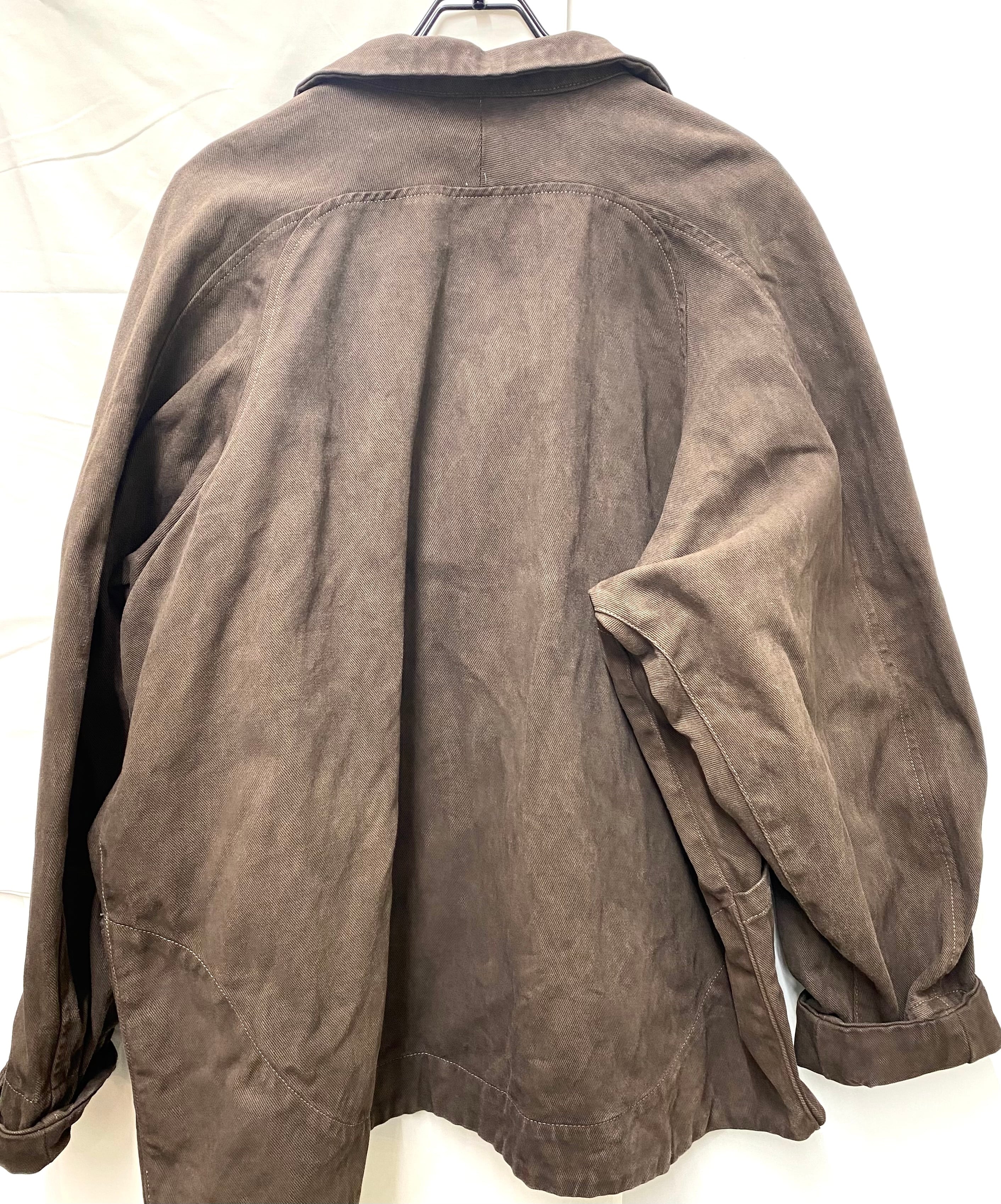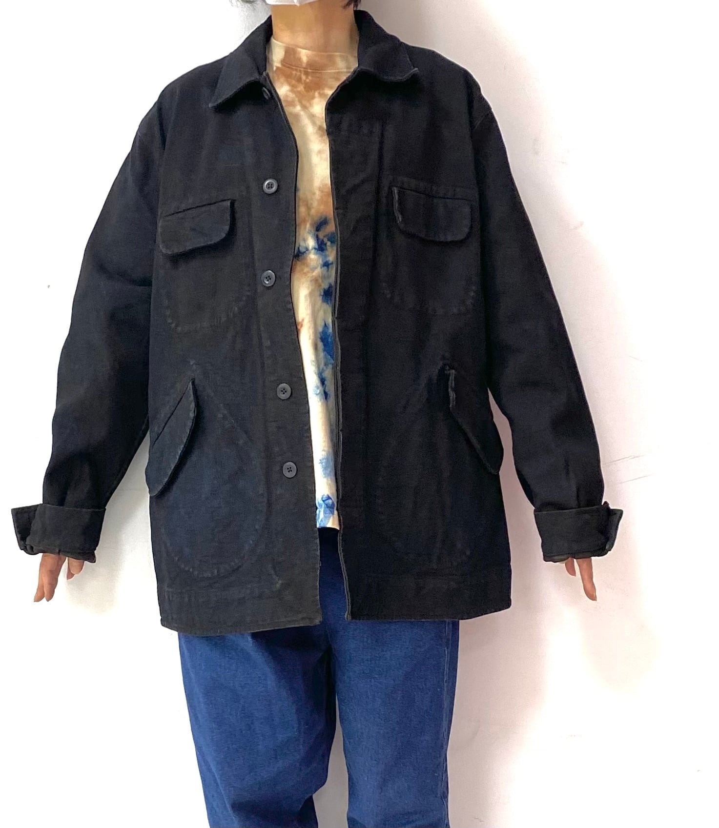 **Four pocket jacket**は、伝統的な泥染め技術を用いて丁寧に染めがられたジャケットです。自然の織りなす色合いが魅力的で、シンプルながらも存在感のあるスタイルを演出します。この一着を羽織ることで、リラックスした雰囲気を楽しむことができるでしょう。