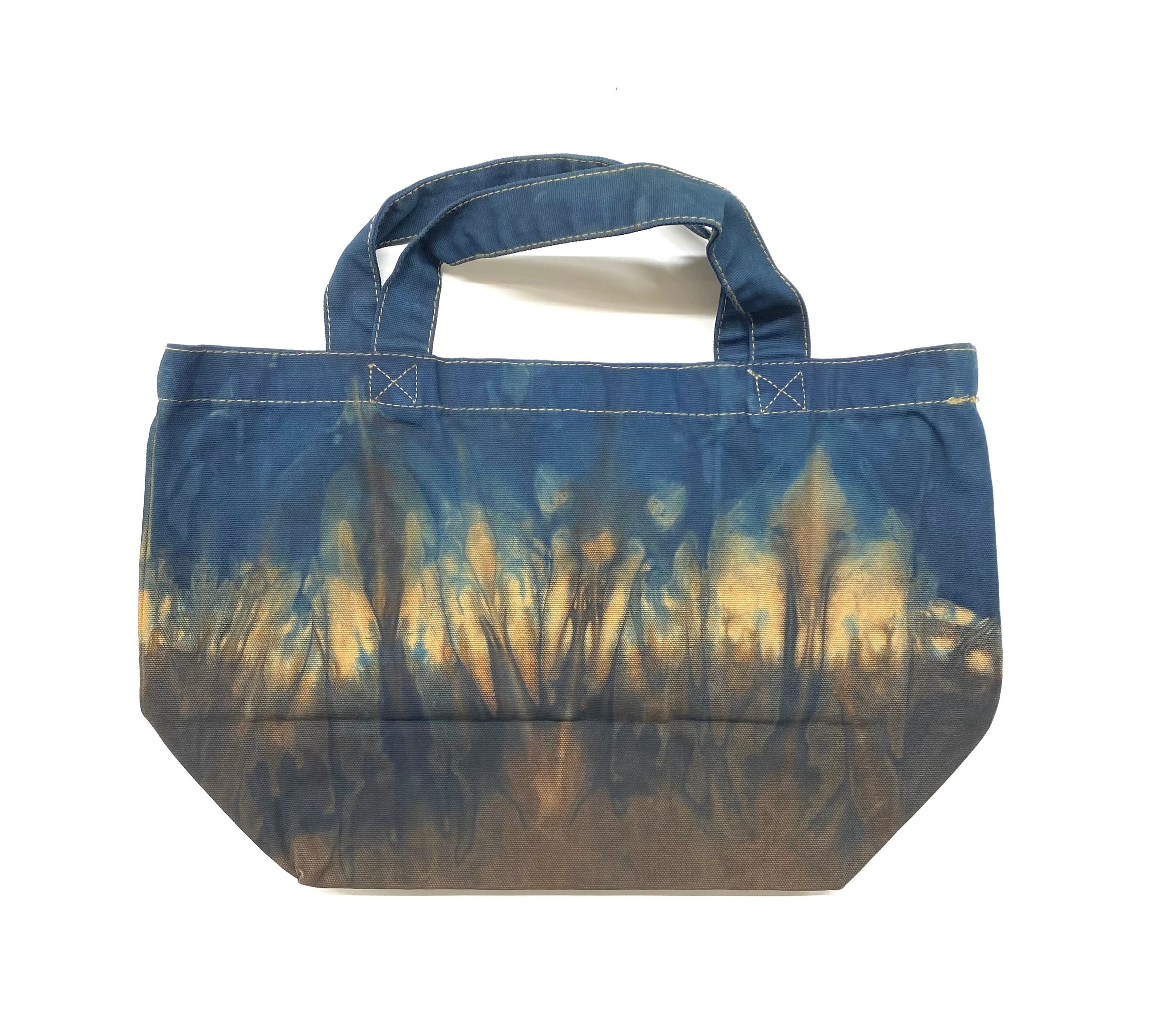 **Sサイズキャンバストートバッグ**は、日常使いにぴったりな小さめのトートバッグです。独自の泥染め技術を用いて手染めされたこのバッグは、自分だけの個性的なスタイルを楽しむことができます。シンプルながらもナチュラルな色合いが魅力で、気軽に持ち歩けるサイズ感が特徴です。お出かけや買い物、ちょっとしたお出かけにも重宝するアイテムです。